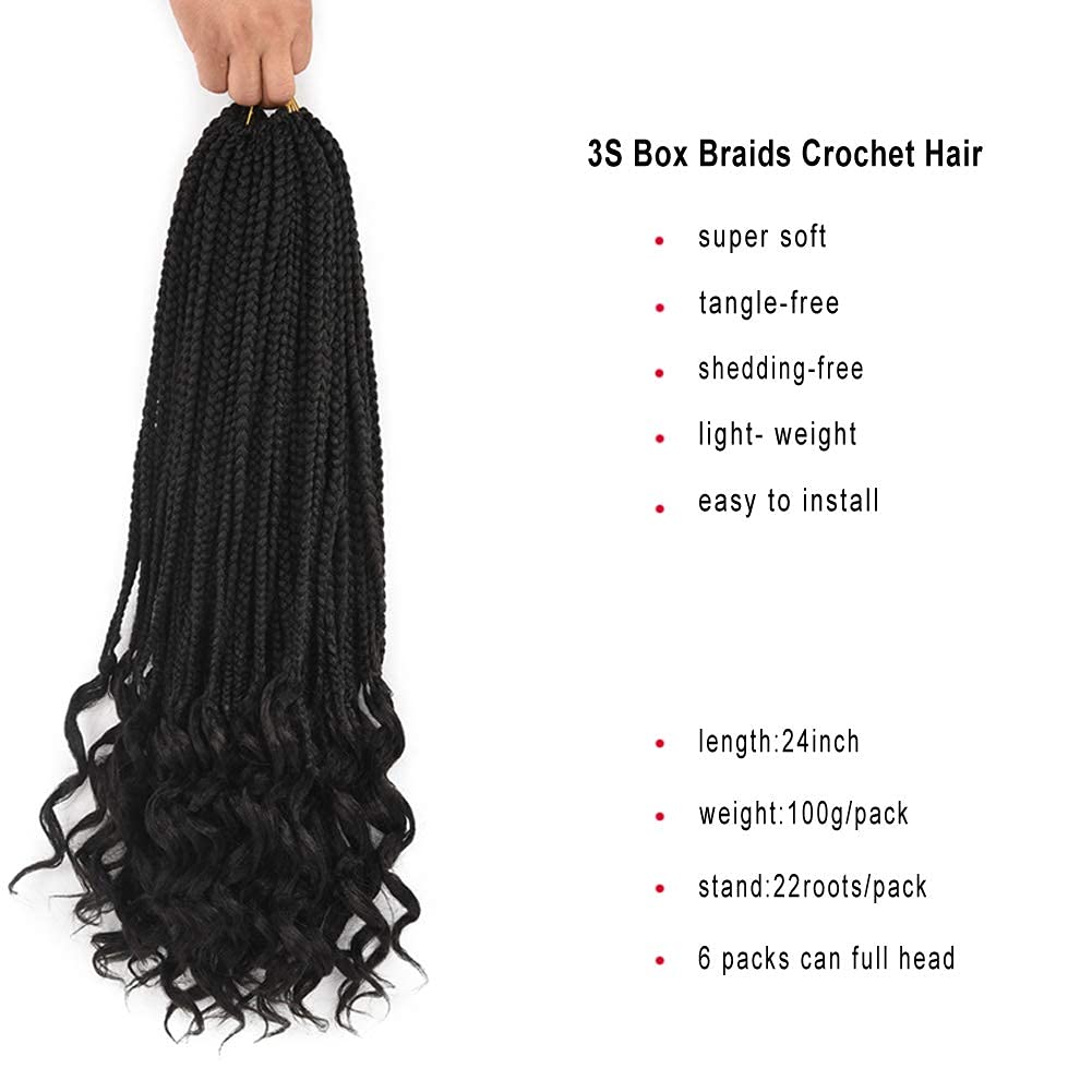 Amazon Com 24inch Long Curly Ends Box Braids Crochet Braiding Hair Extensions Black Color Synthetic Box Braids With Wavy End Crochet Braids For Woman Girls 22 Strands Pack 6packs 24inch 1b Beauty
